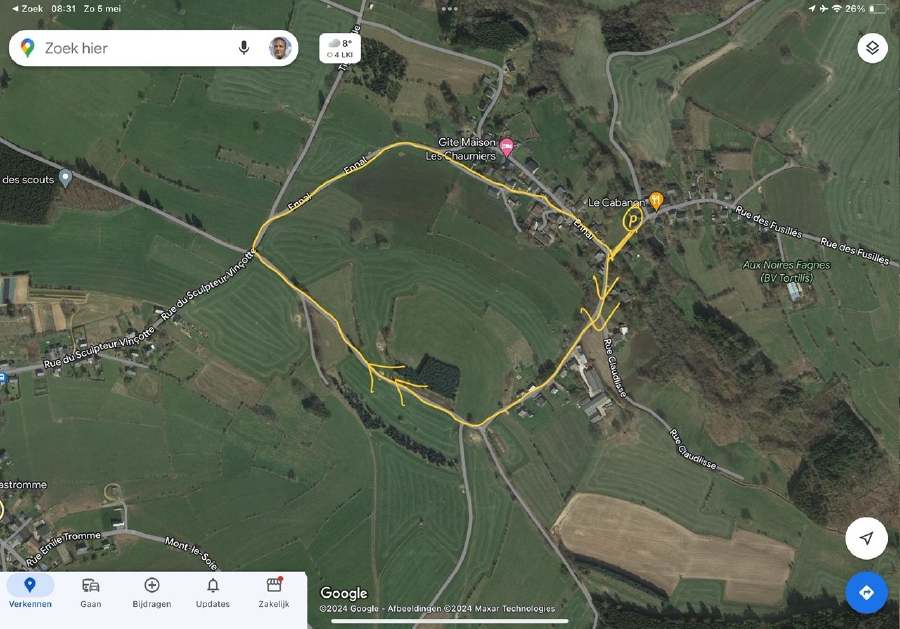 Vertrekken in de richting van Aisomont vinden wij het leukste. Tegen de klok inlopen dus.